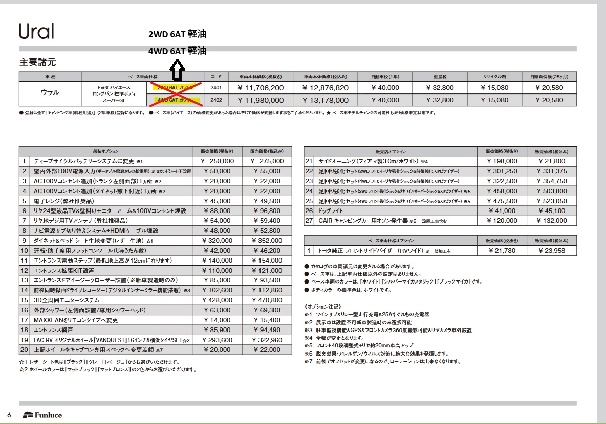 ウラルに関して、ベース車表記に間違いがございました。